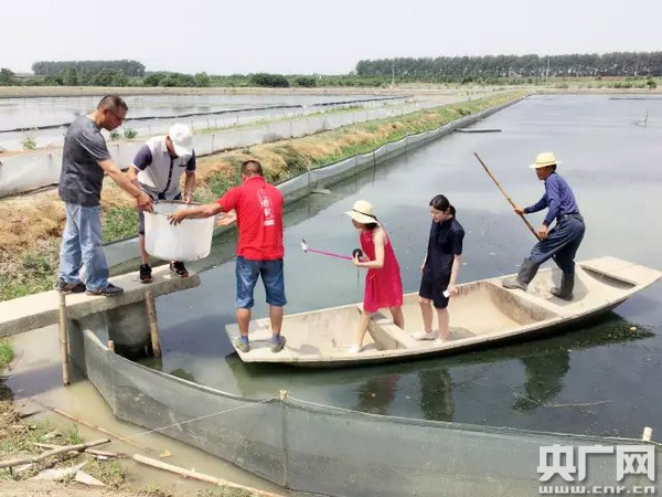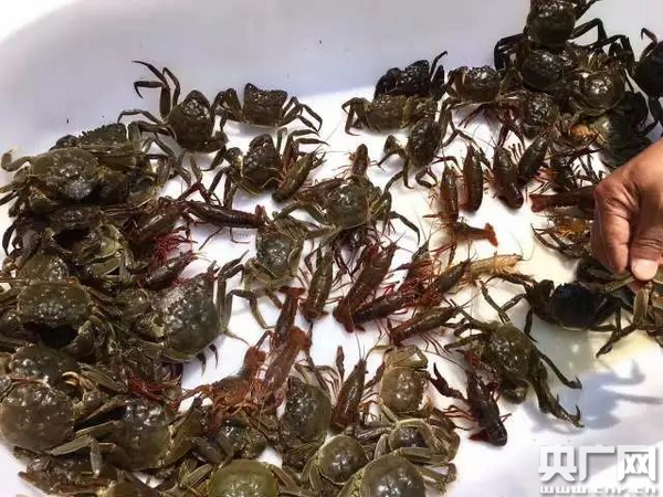 搖著槳,主播坐在一條小漁船上,眼前是一片水塘。這里是“王鮮記”的水產(chǎn)養(yǎng)殖基地。他們銷往全國(guó)各地的水產(chǎn)品,就藏在這一片片水塘里,F(xiàn)在,主播慧思要體驗(yàn)下湖撈螃蟹。不一會(huì)兒,一網(wǎng)活蹦亂跳的螃蟹和小龍蝦就被撈了上來(lái)。