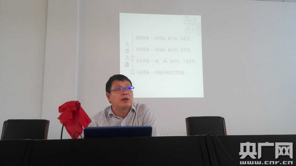 申進(jìn)文教授在進(jìn)行食用菌種植的講座現(xiàn)場(chǎng)