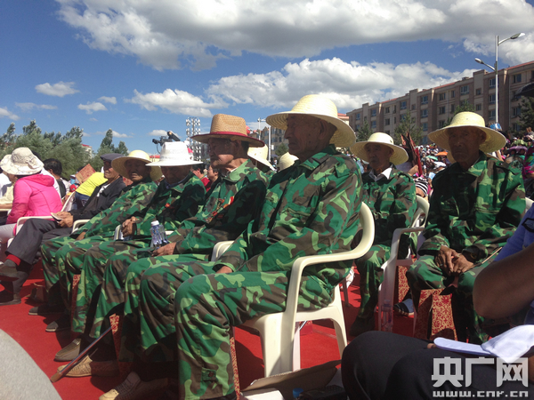 文藝演出現(xiàn)場(chǎng)中的抗戰(zhàn)老兵方陣