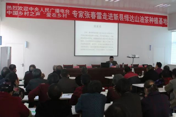 以中國農(nóng)業(yè)科學院油料作物研究所專家張春雷為主的農(nóng)技小組一行人,在28日上午9點來到新縣綠達油茶種植基地,為趕來聽課的老鄉(xiāng)們做了題為”油茶豐產(chǎn)栽培技術”的講座。
