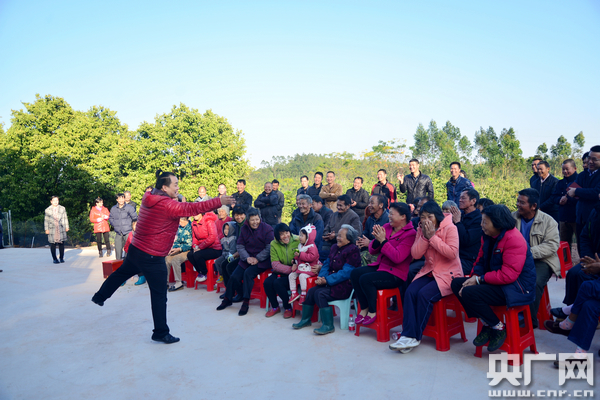 中國(guó)鐵路文工團(tuán)相聲演員張偉在廣東省河源臨埔前真坪圍村的表演不僅吸引了村民,連村里遠(yuǎn)處的雞和狗都定睛往這看啦。