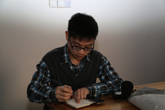 中國(guó)鄉(xiāng)村之聲記者許偉在趕寫(xiě)稿子