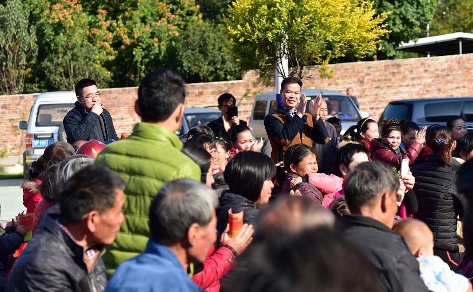 彭書記在宣講會和觀眾在一起