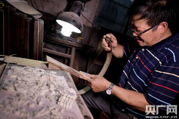 央廣網(wǎng)北京10月10日消息(記者曹美麗 房煒)據(jù)中國(guó)鄉(xiāng)村之聲報(bào)道,寧波市江北區(qū)慈城古縣城太湖路歷史文化街區(qū),坐落著一個(gè)個(gè)古色古香的四合院。推開(kāi)其中一座四合院的大門(mén),走進(jìn)院子,順著鋸子聲,就來(lái)到了甘金云的非遺工作室。已經(jīng)58歲的他,頭發(fā)微白,身材略胖。此時(shí),他正低著頭,專心用鋼絲鋸鋸牛骨。