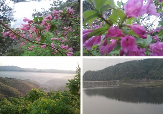 五月,正是山花爛漫時節(jié),漫山遍野的丁香花競相開放,姹紫嫣紅,猶如一顆顆璀璨奪目的紅寶石鑲嵌在綠蔭叢中,令人陶醉。我的故鄉(xiāng)就坐落在這三面環(huán)水,一面傍山的仙境中。