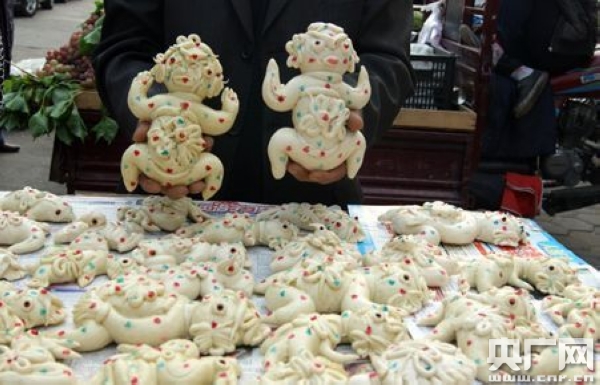 陜西神木縣自古以來就有“七月初一人捏人,七月十五人吃人”的說法,這里面的人捏人,人吃人,指的就是人捏面花,人吃面花。在神木縣,最早流傳的說法是北部鄉(xiāng)鎮(zhèn)的面花,是一種傳遞信息的工具,村里人為了抵御外敵入侵,在面花里夾雜著紙條,相互送面花傳遞軍事情報(bào),而在神木縣的南部鄉(xiāng)鎮(zhèn),面花則用來祭祀河神,祈愿河神保佑兒女平安、莊家豐收。