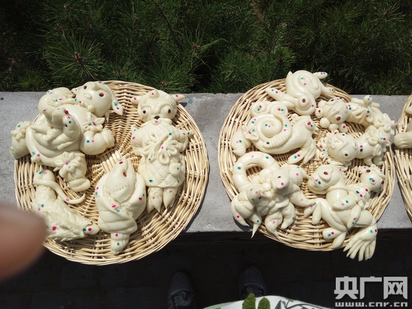 劉蘭芳:往年,捏那么多面人,把人急得,半夜就被大人叫起來了,捏上面人直到羊出坡的時(shí)候,大人、小孩齊上手。我們小時(shí)候砍的燒柴,把柴塞進(jìn)灶坑里,拿嘴吹火,吹得流淚流的不行,站在鍋臺(tái)上聞見蒸面花的味道,氣味都覺得特別甜。