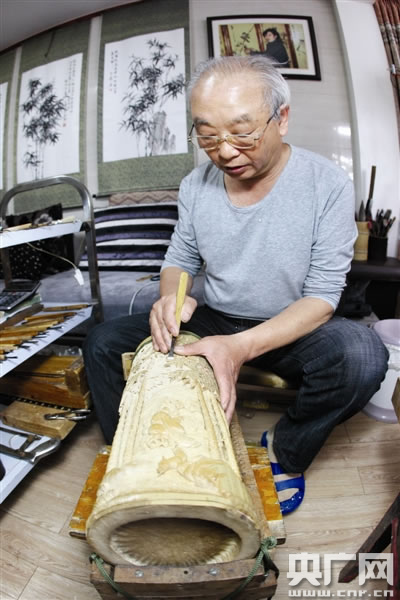 走進(jìn)竹工藝大師何華一的工作室,他正在手把手地教徒孫如何雕刻竹簧。何華一喜歡稱自己為手藝人,手藝人有手藝人的規(guī)矩,就是要讓這竹簧雕刻手把手一代一代的傳承下去。