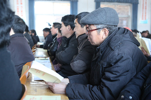 宣講現(xiàn)場(chǎng)農(nóng)民仔細(xì)閱讀政策解讀手冊(cè)(央廣網(wǎng)記者陳江南_攝)