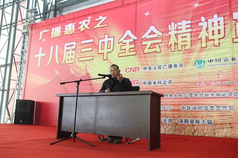 央廣網(wǎng)阜陽2月13日消息(記者喬萍莉 陳江南)2月11日,由中國鄉(xiāng)村之聲承辦的“廣播惠農(nóng)之十八屆三中全會精神入鄉(xiāng)村”活動來到安徽毫州渦陽縣陳大鎮(zhèn),中國社會科學(xué)院農(nóng)村發(fā)展研究所研究員、宏觀室副主任李國祥為鄉(xiāng)親們帶來政策解讀。