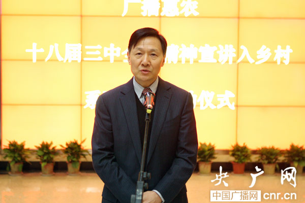 三中全會(huì)精神宣講入鄉(xiāng)村活動(dòng),是中央人民廣播電臺(tái)實(shí)施“廣播惠農(nóng)工程”的又一重要舉措,也是國(guó)家電臺(tái)聯(lián)合中國(guó)農(nóng)業(yè)銀行等涉農(nóng)企業(yè)為農(nóng)民進(jìn)行公益服務(wù)、履行社會(huì)責(zé)任的又一有益嘗試。2012年12月起,中央人民廣播電臺(tái)利用創(chuàng)辦國(guó)家對(duì)農(nóng)廣播頻率中國(guó)鄉(xiāng)村之聲的契機(jī),實(shí)施國(guó)家電臺(tái)“廣播惠農(nóng)工程”,讓廣播成為農(nóng)村公共文化體系建設(shè)的有效手段之一,服務(wù)農(nóng)民、惠及農(nóng)民。目前在廣大農(nóng)村,黨和國(guó)家的政策入戶存在“三少”現(xiàn)象,即針對(duì)農(nóng)民的政策解讀少,對(duì)農(nóng)民有具體指導(dǎo)的少,能給農(nóng)民講明白的少。因此,利用廣播媒體的優(yōu)勢(shì),邀請(qǐng)熟悉三農(nóng)政策甚至是參與制定政策的專家,及時(shí)、準(zhǔn)確、專門(mén)地針對(duì)基層干部和農(nóng)民群眾宣講三中全會(huì)精神,既有效,又切實(shí),可以填補(bǔ)三中全會(huì)精神在農(nóng)村宣傳的真空。
