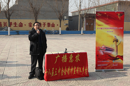 央廣網(wǎng)正定1月22日消息(記者陳江南 陶澤文 劉思思 李沛)“十八屆三中全會(huì)精神宣講入鄉(xiāng)村”宣講團(tuán)在正定縣塔元莊村宣講完后,旁邊的西柏棠村得知后,特意邀請我們在他們村臨時(shí)在開一次宣講。于是,宣講團(tuán)成員就冒著寒風(fēng)在西柏棠村的村廣場上為村民們進(jìn)行了一場精彩的宣講。