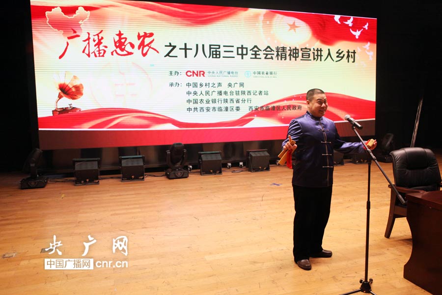 央廣網(wǎng)西安2月19日消息(記者陳江南 孟超 溫超 李偉民)2月19日上午,由中央人民廣播電臺、中國農(nóng)業(yè)銀行主辦、中國鄉(xiāng)村之聲、央廣網(wǎng)承辦的“廣播惠農(nóng)之十八屆三中全會精神宣講入鄉(xiāng)村”在陜西省的第二場活動在西安市臨潼區(qū)舉行。
