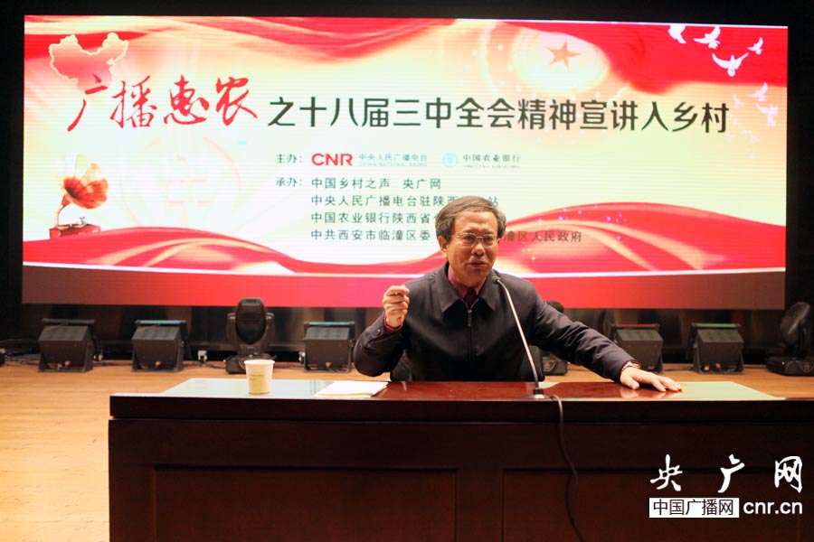 央廣網(wǎng)西安2月19日消息(記者陳江南 孟超 溫超 李偉民)2月19日上午,由中央人民廣播電臺、中國農(nóng)業(yè)銀行主辦、中國鄉(xiāng)村之聲、央廣網(wǎng)承辦的“廣播惠農(nóng)之十八屆三中全會精神宣講入鄉(xiāng)村”在陜西省的第二場活動在西安市臨潼區(qū)舉行。