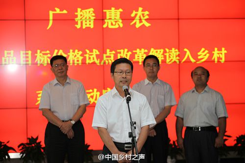 8月25日,中央人民廣播電臺(tái)與國(guó)家發(fā)改委共同舉辦的“廣播惠農(nóng)之農(nóng)產(chǎn)品目標(biāo)價(jià)格試點(diǎn)改革解讀入鄉(xiāng)村”公益活動(dòng)正式啟動(dòng)。國(guó)家發(fā)改委價(jià)格司副司長(zhǎng)郭劍英說(shuō):農(nóng)產(chǎn)品目標(biāo)價(jià)格試點(diǎn)改革,關(guān)鍵取決于廣大農(nóng)村基層的群眾和干部能不能理解好、貫徹好、執(zhí)行好這項(xiàng)政策,因此,做好宣傳十分重要。