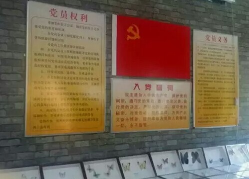 走上蝴蝶園區(qū)的二層,我們看上白墻上醒目地掛著一大張紅底黃字的入黨誓詞,園區(qū)的工作人員介紹說,這里是才溪鄉(xiāng)的一個黨支部。
