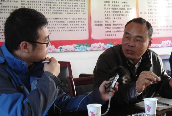 中國鄉(xiāng)村之聲記者何鵬在采訪周正爽