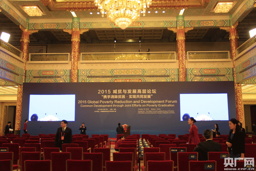 2015減貧與發(fā)展高層論壇即將在北京人民大會(huì)堂金色大廳舉行。(央廣網(wǎng)記者 侯力新 攝)