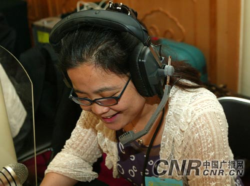 慶祝中國共產(chǎn)黨成立85周年暨總結(jié)保持共產(chǎn)黨員先進性教育活動大會,30日上午9時在中南海懷仁堂禮堂隆重舉行。胡錦濤、吳邦國、溫家寶、賈慶林、曾慶紅、黃菊、吳官正、李長春、羅干出席。中央人民廣播電臺中國之聲、中華之聲、華夏之聲對活動大會進行了現(xiàn)場直播。圖為中央臺播音員鄭嵐在直播中。 中廣網(wǎng)記者李洪濤 攝