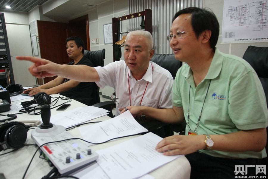 中央人民廣播電臺(tái)副總編輯劉曉龍?jiān)诂F(xiàn)場(chǎng)指揮直播工作(央廣網(wǎng)記者 夏鵬程 攝)