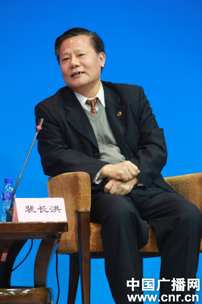 中國社科院經(jīng)濟所所長 裴長洪(中廣網(wǎng)記者 李雪南攝)