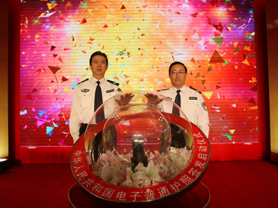 公安部黨委委員、副部長孟宏偉與北京市委常委、公安局局長傅政華共同按下電子普通護(hù)照啟用按鍵。中華人民共和國電子普通護(hù)照簽發(fā)啟動(dòng)儀式5月15日在北京舉行,這標(biāo)志著我國公民的國際旅行證件邁入了全數(shù)字化時(shí)代。