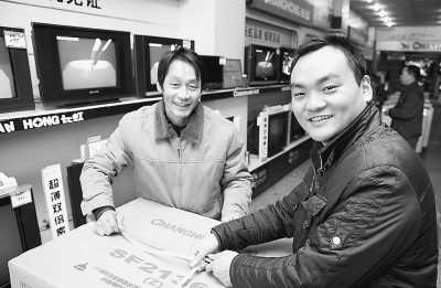1978年以前,普通農(nóng)民家庭很少有什么家電產(chǎn)品,而現(xiàn)在多種家電產(chǎn)品已進(jìn)入農(nóng)民家庭。圖為日前,四川省永興鎮(zhèn)農(nóng)民正購買“補(bǔ)貼家電”。