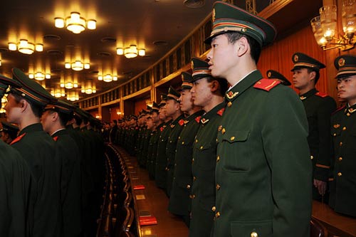 紀(jì)念黨的十一屆三中全會(huì)召開(kāi)30周年大會(huì)于18日上午10時(shí)在人民大會(huì)堂舉行。圖為全體起立奏國(guó)歌。新華網(wǎng) 文濤 攝