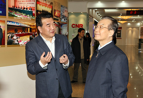 據(jù)中央人民廣播電臺(tái)中國(guó)之聲14:00報(bào)道,今天中午溫家寶總理在列車(chē)車(chē)廂里接受本臺(tái)采訪(fǎng),他特別通過(guò)中央廣播電臺(tái)向全國(guó)人民提前拜年,向全國(guó)聽(tīng)眾表示慰問(wèn)。