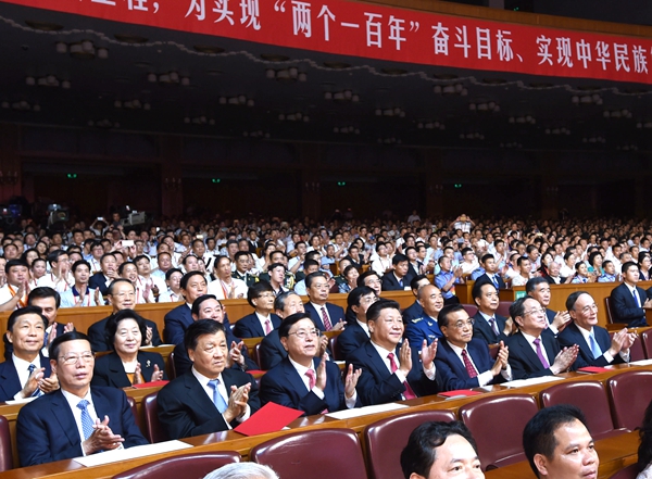 6月29日晚,慶祝中國共產黨成立95周年音樂會《信念永恒》在北京舉行。習近平、李克強、張德江、俞正聲、劉云山、王岐山、張高麗等黨和國家領導人與首都各界3000多人共同觀看音樂會。新華社記者 饒愛民 攝