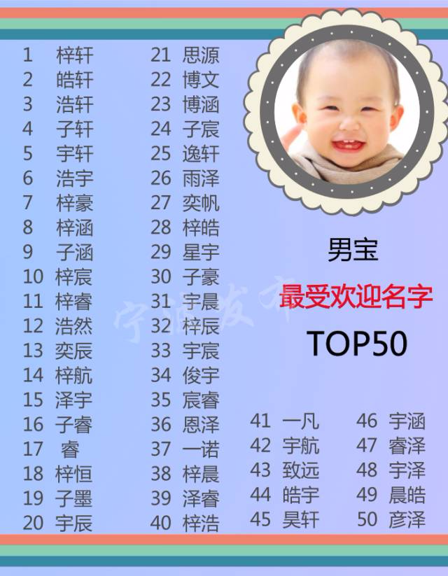 2016寧波男生熱名排行榜top50