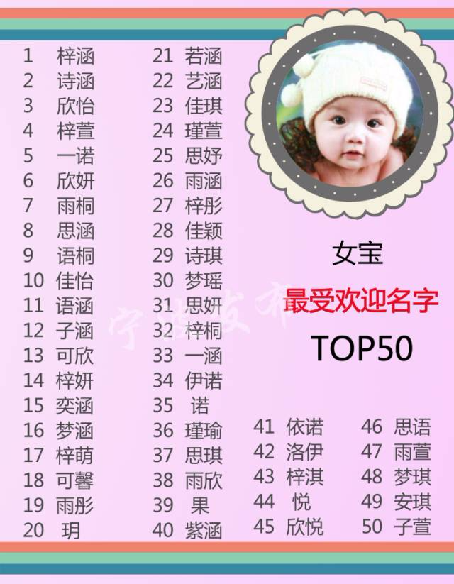 2016寧波女生熱名排行榜top50