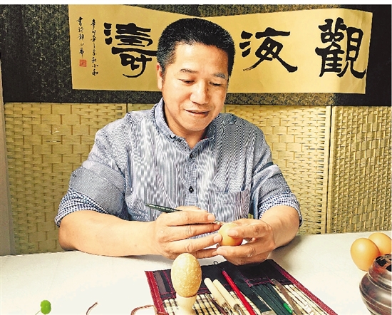 如何發(fā)揮鄉(xiāng)土人才的積極性與創(chuàng)造性,從而讓他們成為鄉(xiāng)村振興的主力軍?首先是要把埋沒在土里的“金子”挖出來,認(rèn)可他們的價值。幾年前,說起李小和,一些當(dāng)?shù)厝酥恢浪且幻麜ɡL畫老師,當(dāng)朱利虹第一次聯(lián)系他了解“蛋雕”時,李小和很驚訝!澳且惶欤以诤林行男W(xué)校長辦公室看到了李老師的蛋雕作品,就立即要了他的聯(lián)系方式,當(dāng)天就去了他家。”朱利虹說。