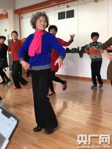 跳完一支熱身舞后,胡暉非常熟練地拿起了遙控器,選了一首熱情洋溢的舞曲,又開(kāi)始跟其他阿姨們跳起舞來(lái)。舞蹈結(jié)束后,胡暉看了看大屏手機(jī)內(nèi)直播時(shí)的網(wǎng)友留言,露出了開(kāi)心的笑容。在離活動(dòng)室不遠(yuǎn)的閱覽室,胡暉接受了記者的專訪。“我其實(shí)是這群人里面年紀(jì)最大的那位,不過(guò)我覺(jué)得年齡只是個(gè)數(shù)字,我是屬于‘人老心不老’的那種”,胡暉說(shuō)。