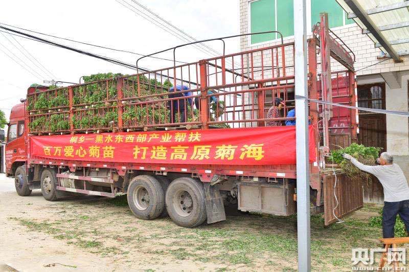 在裝車現(xiàn)場,工人們有序地將一捆捆包好的菊苗裝上車。不久后,這輛承載著桐鄉(xiāng)人民“百萬愛心菊苗 打造高原菊!泵篮米T傅呢涇,將抵達(dá)黑水縣。