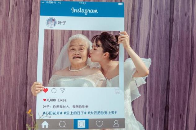 另一位認(rèn)領(lǐng)者葉子帶著80多歲的奶奶一起參與活動(dòng)。在這次“心田花開(kāi)”活動(dòng)中,年邁的奶奶第一次穿上婚紗,和年輕的葉子一起在花海中笑靨如花,恰恰印證了葉子“你把我養(yǎng)大,我陪你到老”的心愿。