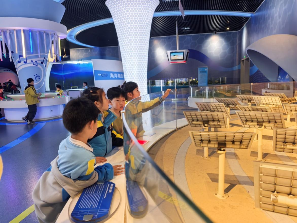 為何聚焦學(xué)生群體?低碳科技館館長蔣曉斌表示:“高峰期單日接待量超千人,傳統(tǒng)講解難以覆蓋,學(xué)生易流于走馬觀花。為此,我們深入分析需求,推出‘研學(xué)題卡導(dǎo)覽’模式!毖袑W(xué)題卡題目分層設(shè)計,兼顧不同年級;活動分散全館,避免人流聚集;集章獎勵激發(fā)興趣,減輕教師管理負擔(dān);顒忧,館方與學(xué)校充分溝通,定制適齡題卡,并安排專人引導(dǎo)。學(xué)生們結(jié)伴探索展項、尋找答案,科普輔導(dǎo)員全程答疑,形成“探索-學(xué)習(xí)-反饋”的閉環(huán)。