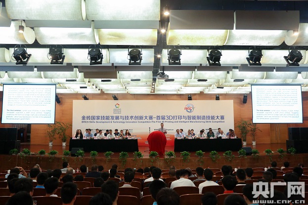 央廣網(wǎng)杭州8月25日消息(記者謝夢潔 通訊員周曦) 雙屏曲面大弧度的“零界VR眼鏡”,酷炫吊炸天的“IRONMAN 可穿戴式鎧甲”,多種傳感器集于一體的“多環(huán)境智能探測‘蜘蛛’機(jī)器人”……這些科技感十足的產(chǎn)品,都是“金磚國家技能發(fā)展與技術(shù)創(chuàng)新大賽-首屆3D打印與智能制造技能大賽” 3D打印賽項(xiàng)的參賽作品。8月24日,“金磚國家技能發(fā)展與技術(shù)創(chuàng)新大賽-首屆3D打印與智能制造技能大賽”在杭州職業(yè)技術(shù)學(xué)院正式開幕。