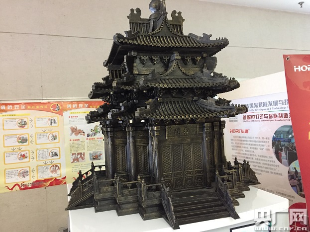 除了參賽選手,現(xiàn)場還有很多參展的企業(yè)。在參展現(xiàn)場,一款非常有特色的用3D打印技術(shù)制作的北京角樓吸引了參展的觀眾。“我們這款北京角樓完全是用3D打印技術(shù)制作的,建模需要3-5天的時(shí)間,然后打印出來需要3到5天的時(shí)間,我們是通過不同3D打印機(jī)器組合打印的,然后后期再用黏合技術(shù)制作出成品”,制作方北京匯天威科技有限公司的負(fù)責(zé)人告訴記者,“我們制作的理念是運(yùn)用現(xiàn)代的科技技術(shù)來制作傳統(tǒng)的中國建筑,展現(xiàn)中國傳統(tǒng)文化的獨(dú)特風(fēng)采!