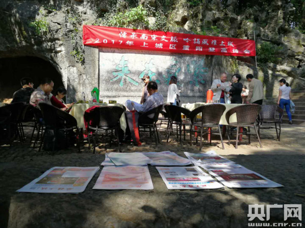 央廣網(wǎng)杭州10月26日(記者張國亮 通訊員王毓)“人生易老天難老,歲歲重陽,今又重陽,戰(zhàn)地黃花分外香……”10月26日,玉皇山上桂花飄香、“群賢畢至,少長咸集”、詩詞韻長。由杭州市上城區(qū)文化廣電新聞出版局和上城區(qū)作家協(xié)會(huì)主辦,上城區(qū)文化館承辦,金桂文學(xué)社協(xié)辦的喜慶十九大上城區(qū)“傳承南宋文脈 吟誦風(fēng)雅上城”2017重陽登高詩會(huì)隆重舉行。
