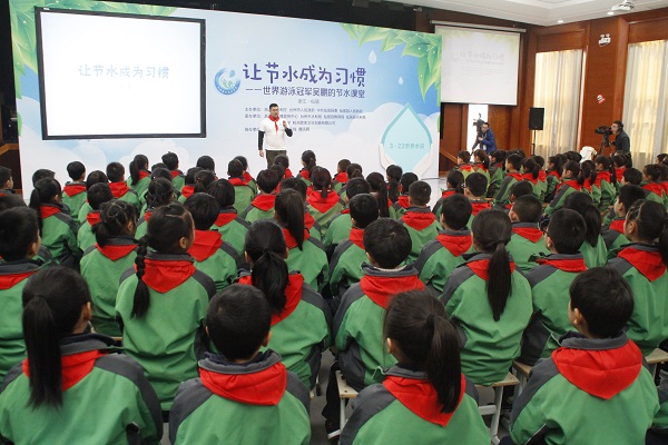 “用1立方米的水,就會有0.7立方米的污水排放出來。從這個意義上說,節(jié)約水資源就是減少污水排放,保護水生態(tài)環(huán)境!痹谟H水毅行結(jié)束后,浙江省親水大使、世界游泳冠軍吳鵬又在仙居縣第四小學(xué),為孩子們上了一堂生動、有趣的節(jié)水公開課。