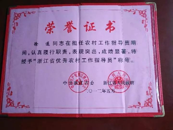 徐遂被評為“浙江省優(yōu)秀農(nóng)村工作指導(dǎo)員”
