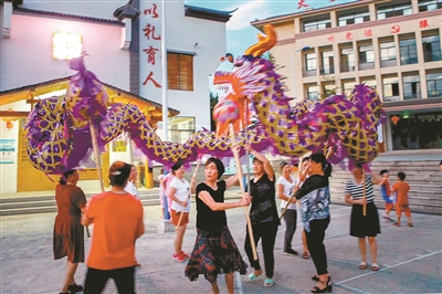 “以前每逢大旱,村民都要舉行祈雨儀式,舞水龍就是其中的一個(gè)內(nèi)容,現(xiàn)在我們要把這個(gè)民俗恢復(fù)起來!狈狡綘柺谴謇锏男W(xué)退休教師,也是如今村里的文化員,自從前年村文化禮堂建起來后,就如魚得水,一直是村文化禮堂的活躍分子和各種文體活動的組織者。