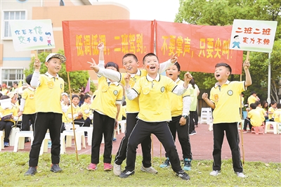 “一般學校都是用書本傳授知識,學生多靠間接經(jīng)驗學習,少有直接經(jīng)驗,因此對所學知識的感受往往不深刻,與生活體驗脫節(jié)!睘榱俗寣W生擁有真實的生活體驗,到青藍的第一年她就提出“讓經(jīng)歷伴隨學習”的辦學理念,試圖給學生創(chuàng)造更多的體驗機會。于是,在學生學習兒童詩《怎么都快樂》時,婁屹蘭在課前對學生經(jīng)歷進行了調(diào)查,并以此為依據(jù)借助“閱讀經(jīng)歷橋”等載體,再現(xiàn)學生生活情境,將學習延伸到游戲中。學生讀到“打排球”“打籃球”“拔河”等詞語時,她就帶領(lǐng)學生做這些動作,讓學生更直觀地體會詞意;當讀到“聽音樂”時,她在課上放起音樂,同學們一起跟著音樂節(jié)拍擺動身子。