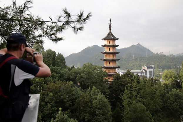 看完琳瑯滿目的雞血石,參觀團(tuán)來(lái)到了南屏山公園。這是昌化省級(jí)森林公園三大區(qū)塊之一,曾吸引蘇東坡等文人墨客留下“亂山滴翠衣裘重,雙澗響空窗戶搖”等經(jīng)典詩(shī)詞。