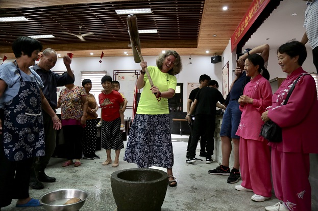 參觀團(tuán)和當(dāng)?shù)卮迕褚黄,在老街?dòng)手體驗(yàn)了打麻糍,并一起分享自己的勞動(dòng)成果。市民代表鄭瑛表示,“已經(jīng)很久沒(méi)有吃過(guò)新鮮出爐的熱乎麻糍了,勾起了很多兒時(shí)的回憶,河橋人民很好客,交到了很多新朋友。”