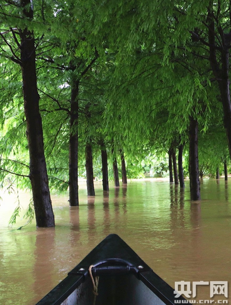 十年前栽下的水杉如今已成林,蕩舟其間,別有一番風(fēng)味(央廣網(wǎng)見(jiàn)習(xí)記者 王海鵬 攝)
