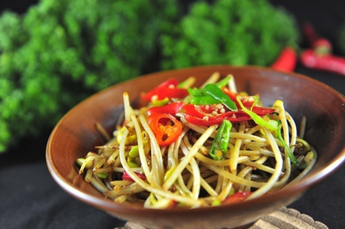 除了綠豆芽,黑豆芽常?梢栽诔锌吹剑有香椿籽兒芽、蘿卜籽兒芽、小麥苗芽能吃、有營養(yǎng),且自己在家用兩張棉紙就可以生出來,加些橄欖油做成沙拉。要說這吃豆芽,在春天青黃不接的時節(jié)里,又能補(bǔ)充足夠的維生素,又可以環(huán)保低碳,不需要非去吃那些反季節(jié)的西紅柿、黃瓜了。