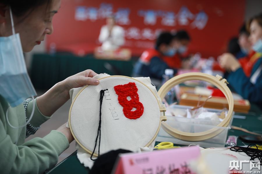 “這是第一次繡手工,邊繡邊學(xué),把紅船精神深深印在心里。紅岸線黨建聯(lián)盟也準(zhǔn)備了豐富的黨史故事,大家一起分享交流,通過在手工藝品創(chuàng)作中融入紅色元素,也讓黨史教育變的鮮活生動起來!背錾90年代的王林波表示。