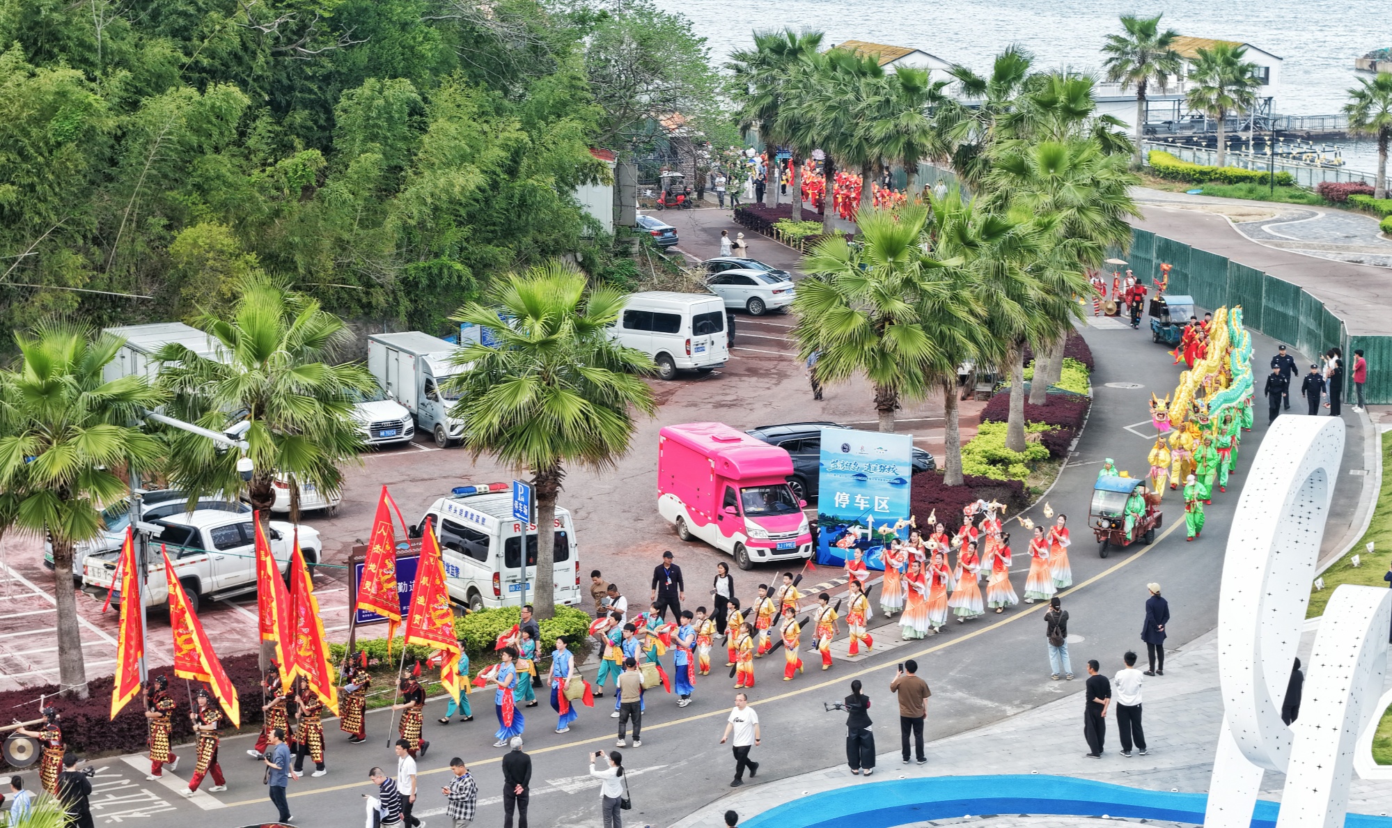 巡游所到之處,人群自動讓行又迅速聚攏,不少游客全程跟隨。專程從上海趕來的邵先生舉著相機跟拍,原本只為觀看海釣賽事,卻意外邂逅民俗:“比普通景區(qū)有趣多了!”一路上,游客被熱情感染,主動加入載歌載舞的行列。一位年輕姑娘跟著學(xué)起漁家舞步,動作生澀卻笑得燦爛:“今天也算過一把演員癮!”